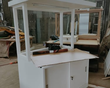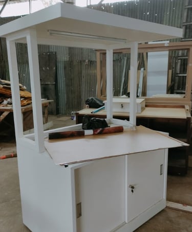 Tampilan belakang outlet dirancang untuk memastikan efisiensi operasional, kenyamanan bagi penjual, dan penyimpanan yang rapi.