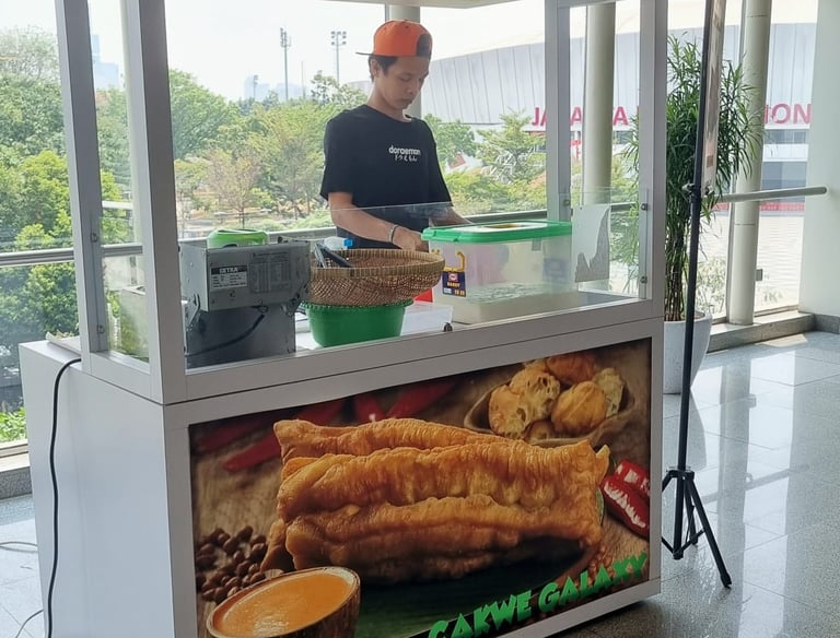 Konsep outlet Cakwe Galaxy dirancang dengan pendekatan modern, profesional, dan fleksibel, menyesuaikan dengan kebutuhan bisnis kuliner berbasis gerobak yang tetap mengutamakan estetika, kebersihan, dan efisiensi operasional.